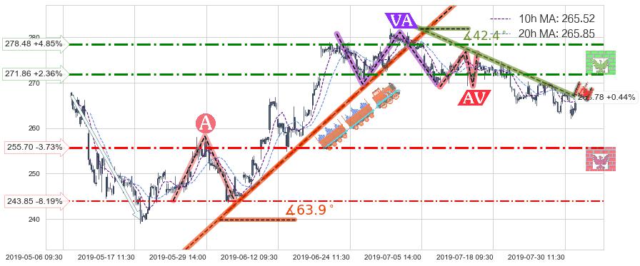 ♘ 阻力价格位271.86,可信任强度67.38%,距离最后交易2019-07-31 15:00形成的收盘价格265.60相差 +2.36%