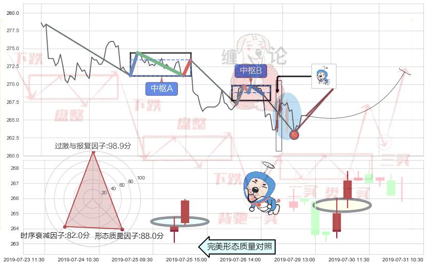 ➣ 【中枢B】:07-25:09-07-26:15,中枢由5笔构成,共12交易小时, ZG=269.80, ZD=268.80