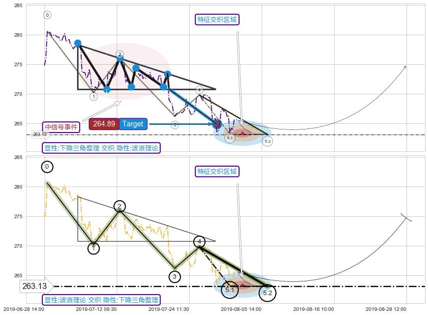 ♘ 在最后的下跌阶段2019-07-02 09:30至2019-07-31 14:00,存在 持续未破位的阻力位 ,阻力价格266.78,可信任强度81.82%,其距离最后价格265.60相差 +0.44%