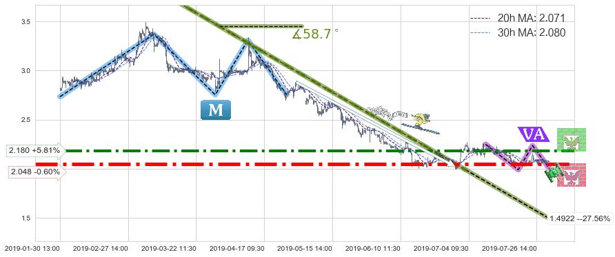 ♘ 阻力价格位2.180,可信任强度81.47%,距离最后交易2019-07-31 15:00形成的收盘价格2.060相差 +5.81%