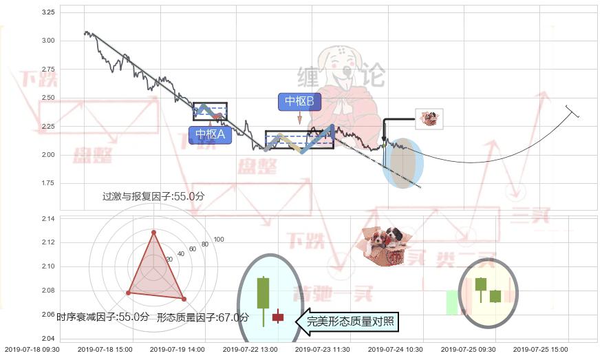 ➢ 底部尽头线(上山虎) 🔜 缠论中枢点下降缠临近1买反弹点 综合量化分数:53.75 【偏多】