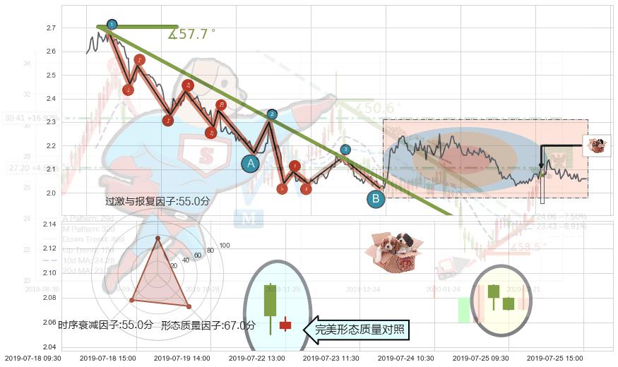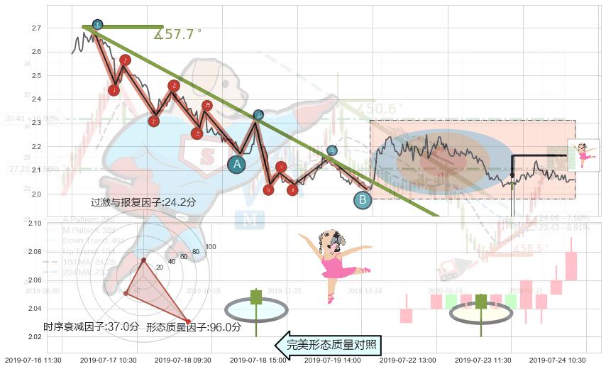 从2019-05-14 13:00至2019-07-03 10:30,共包含203个小时,阶段股价下跌-17.32%,阶段股价变动位移路程比: 1 : 7,下跌趋势角度: 57.7