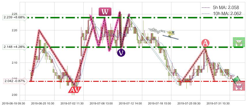 ♘ 阻力价格位2.148,可信任强度93.98%,距离最后交易2019-07-31 15:00形成的收盘价格2.060相差 +4.28%