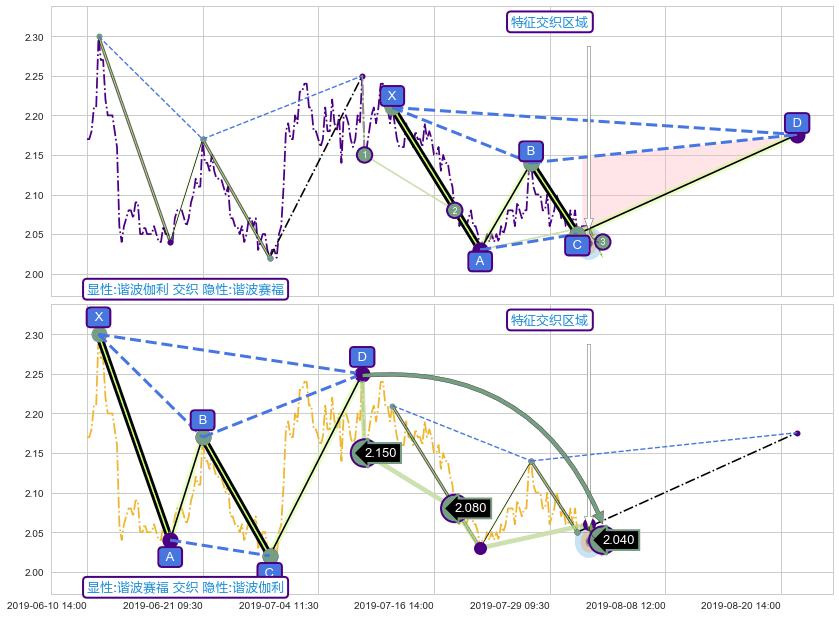 ➢ 谐波伽利:b下跌接近c:猜想支撑性拉升 → 上涨 →【拐点】支撑临近 → 大趋势均值回复
