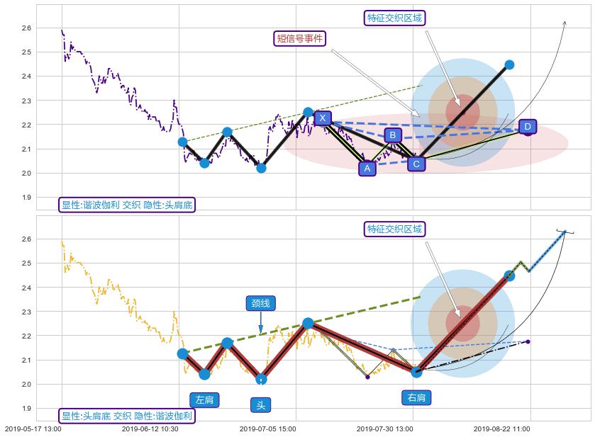 ➢ 谐波伽利属【短级别信号事件】头肩底属【长级别信号事件】长短周期组合信号事件, 短长事件长度比28.57%