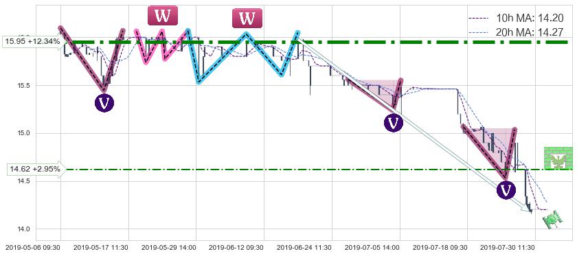 ♘ 阻力价格位14.62,可信任强度36.34%,距离最后交易2019-07-31 15:00形成的收盘价格14.20相差 +2.95%