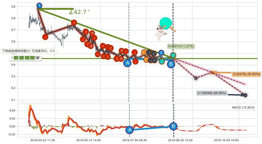 ➣ 预测:2019-09-10 10:00,【试探阻力】稳定目前下跌趋势的前提下,预测价格:0.33479