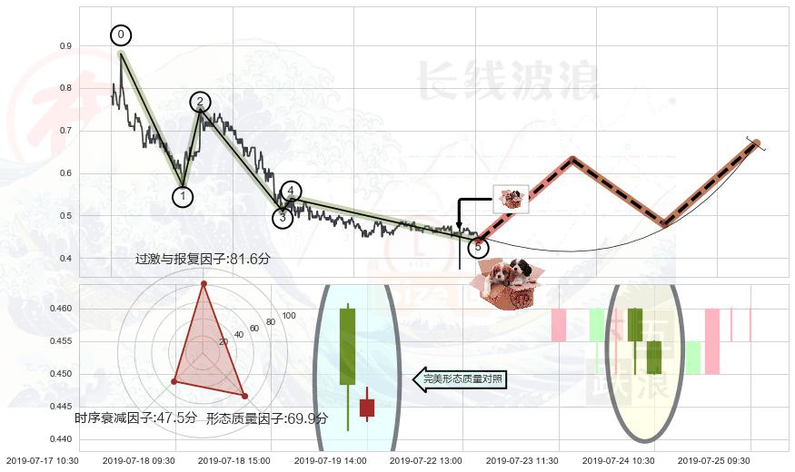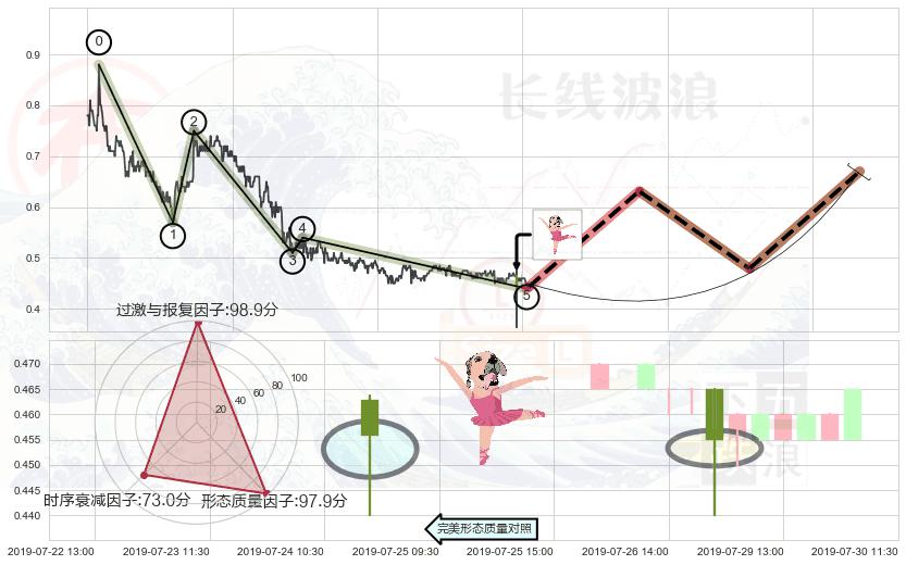 ➢ 🕰 价格走势在2019-07-24 09:30:00至2019-07-24 10:30:00期间形成底部尽头线(上山虎),残存影响值:5.44
