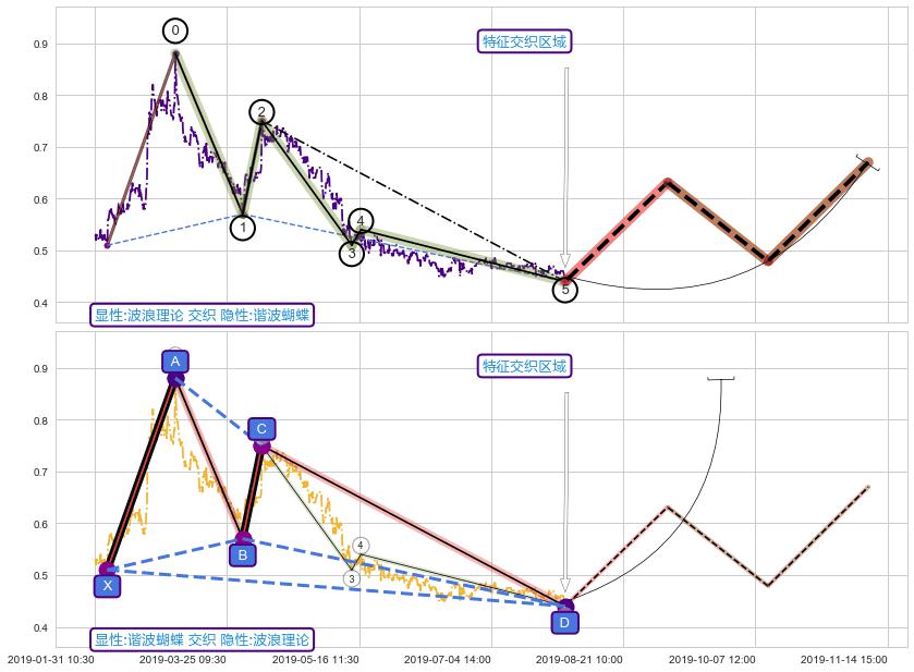 ➢ 波浪理论与谐波蝴蝶信号事件周期长度级别相同,同周期信号事件