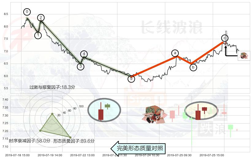 ➢ 🕰 价格走势在2019-07-25 15:00:00至2019-07-25 15:00:00期间形成看涨(低位)倒锤头线,残存影响值:2.87