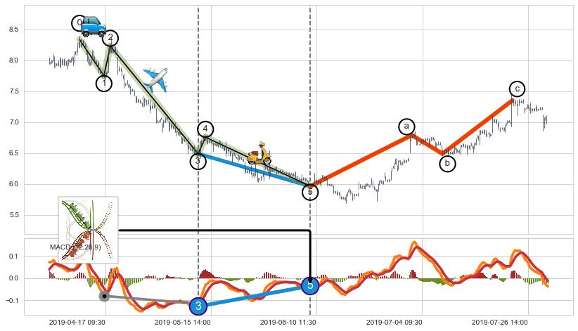 ➢ 波浪理论:猜想达到c点后小反弹终止反转下跌 → 下跌 → 【拐点】临近 → 阶段均值回复结束后继续大周期趋势跟踪