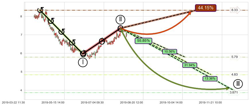➣ 大趋势循环浪继续向下概率55.85%