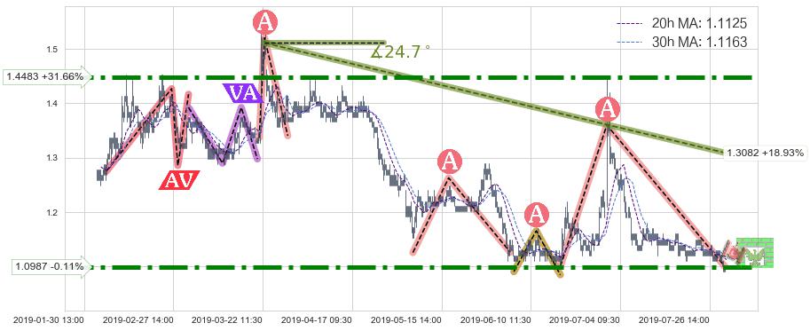 ♘ 阻力价格位1.0987,可信任强度89.99%,距离最后交易2019-07-31 15:00形成的收盘价格1.1000相差 -0.11%