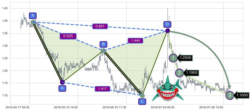 ➣ 已达成看跌【鲨鱼】形态全部的预期目标