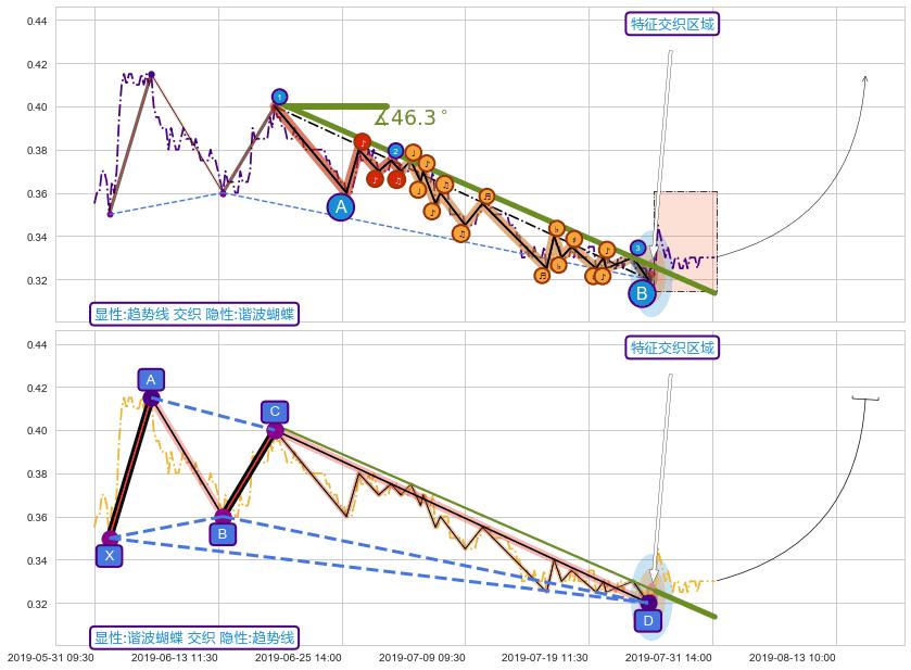 ➢ 趋势线与谐波蝴蝶信号事件周期长度级别相同,同周期信号事件