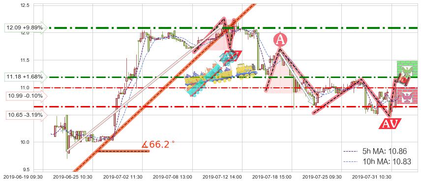 ♘ 支撑价格位10.99,可信任强度44.32%,距离最后交易2019-07-31 15:00形成的收盘价格11.00相差 -0.10%