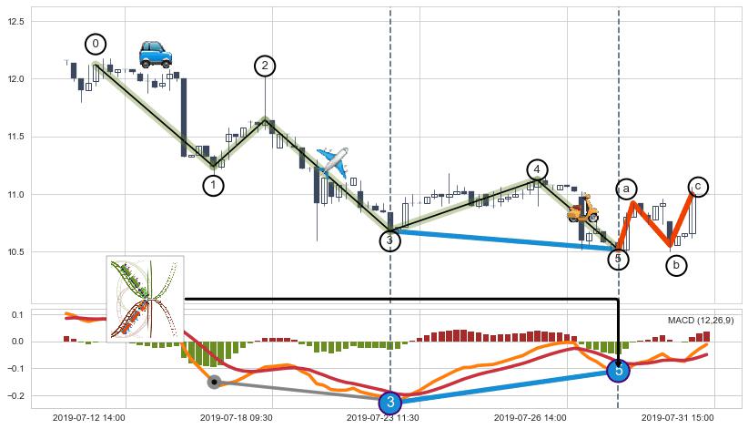 ➣ 波浪理论:猜想击穿突破c点后继续上涨 → 上涨 → 机会信号 → 小趋势跟踪