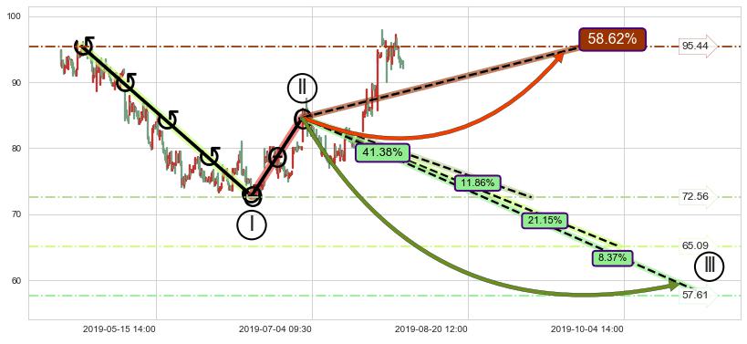 ➣ 大趋势循环浪继续向下概率41.38%