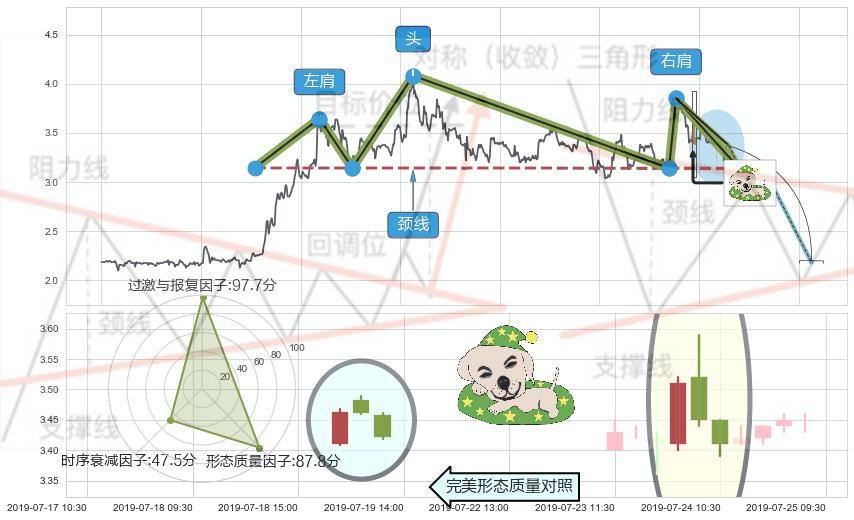 ➣ 黄昏之星(夜星) + 头肩顶临近支撑猜想转换阻力下跌信号叠加后【目标达成率】中等,【看空】信号叠加【存续影响中等】