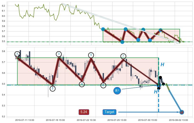 ➢ 【多方力量耗尽】已在07-31:09突破矩形提供的【支撑】颈线 5.49 →箱形震荡盘整结束