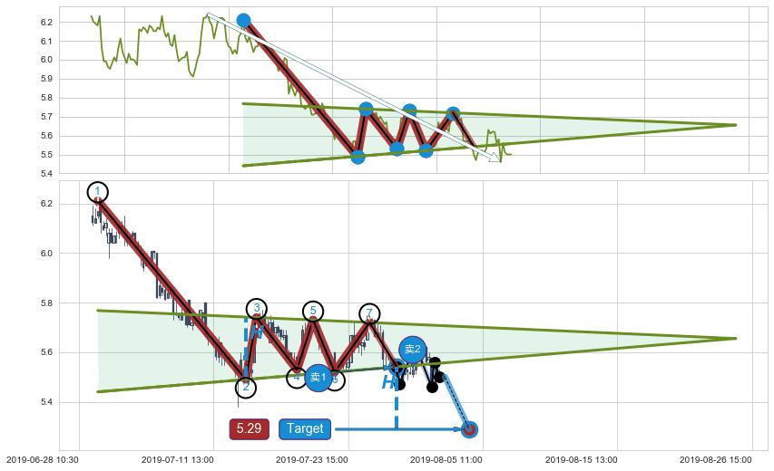 ➣ 【卖2】: 保守型 卖点→(07-29:15: 5.53 )形成下降【对称】三角形整理突破后的【回抽确认】