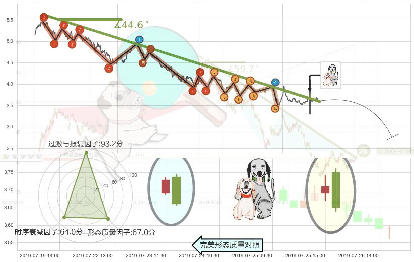 🦴 长线均值回复组合短线趋势跟踪[强阻力信号]2019-02-14 15:00-2019-07-11 09:30下跌趋势依然成立(下跌趋势跟踪依然存在),短线价格略微上行反弹(均值回复猜想),即将接近下跌趋势提供的未破位阻力价格:3.588。