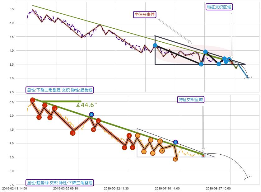 ➢ 下降三角整理属【中级别信号事件】趋势线属【长级别信号事件】中长周期组合信号事件,中长事件长度比38.86%