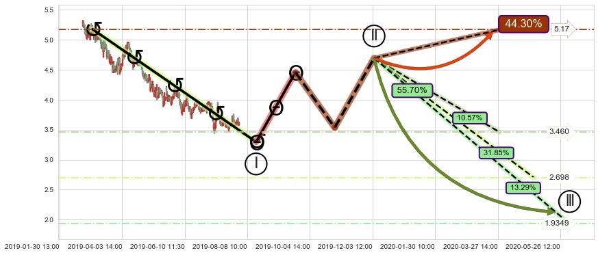 ➣ 循环浪继续向下【平均值】位置(05-01:10, 2.698),匹配聚类样本比例57.18%, 可能性概率31.85%