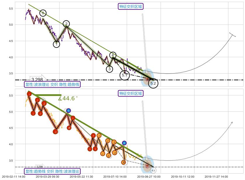 从2019-02-14 15:00至2019-07-11 09:30,共包含584个小时,阶段股价下跌-32.62%,阶段股价变动位移路程比: 1 : 11,下跌趋势角度: 44.6