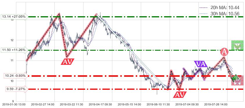 ♘ 支撑价格位10.24,可信任强度91.61%,距离最后交易2019-07-31 15:00形成的收盘价格10.34相差 -0.93%