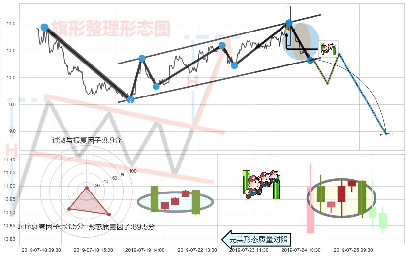 ➢ 🕰 价格走势在2019-07-24 10:30:00至2019-07-24 15:00:00期间形成下降三部曲(降势三鹤),残存影响值:-2.97