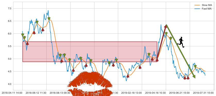 04-18 15:00至07-08 13:00 慢线与快线呈空头排列, 慢线与快线接触少,无缠绕