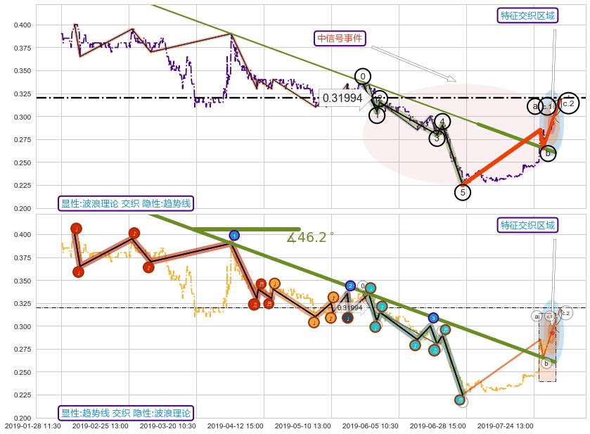 ➢ 2019-01-31 14:00-2019-07-04 15:00下跌趋势存在反转上涨[机会],其原下跌趋势的阻力位(0.26059)已被突破[强支撑信号],原下跌趋势角度: 46.2˚