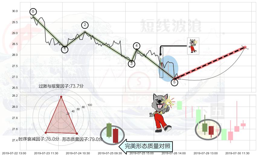 从2019-07-15 10:30至2019-07-31 14:00,共包含76个小时,阶段股价下跌-7.56%,阶段股价变动位移路程比: 1 : 3,下跌趋势角度: 30.2