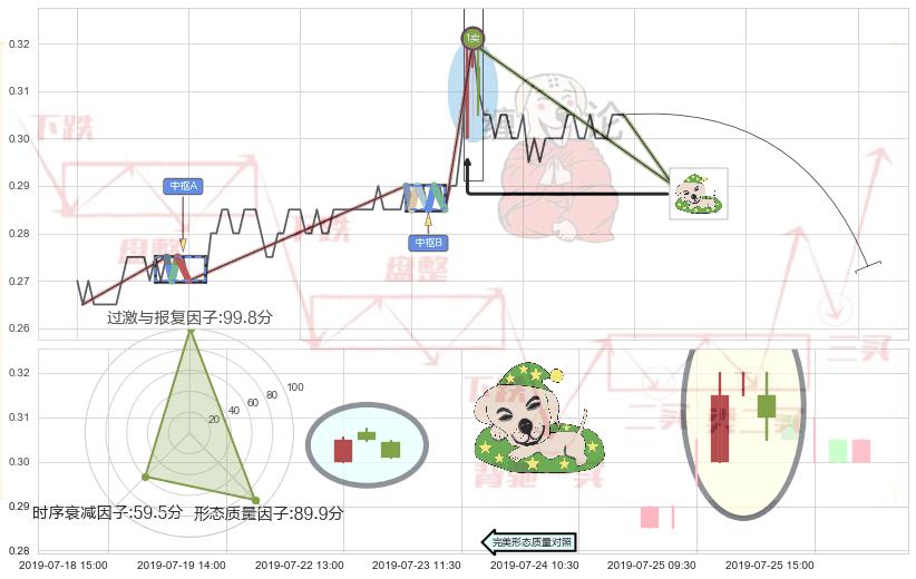 ➢ 🕰 价格走势在2019-07-25 10:30:00至2019-07-25 13:00:00期间形成黄昏之星(夜星),残存影响值:-4.36