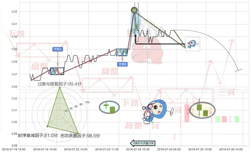 从2019-07-26 15:00至2019-07-31 15:00,共包含19个小时,阶段股价上涨0.17%,阶段股价变动位移路程比: 1 : 100
