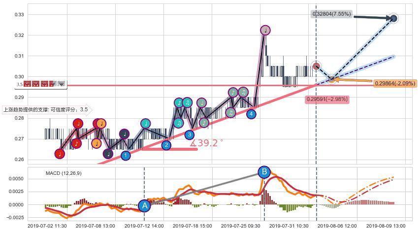 ➣ 预测:2019-08-09 13:00,【继续上扬】稳定目前上涨趋势的前提下,预测价格:0.32804