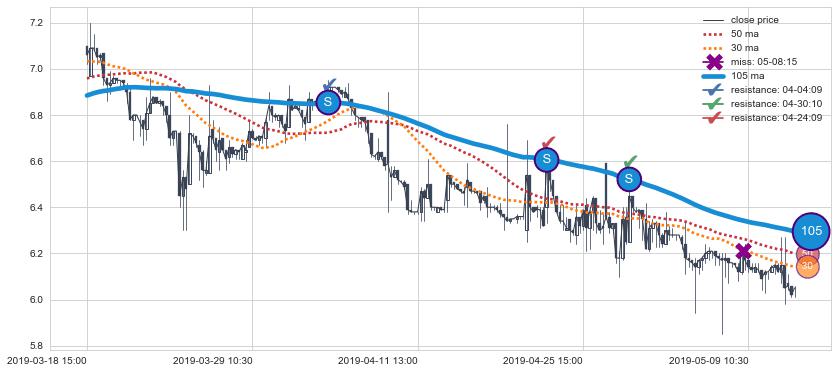 ➣ 34小时均线于(05-23 15:00: 6.79)形成【死叉】基于【死叉历史模型】预测死叉后最低波谷价格: 6.56, 死叉后最低价格5.60,已经下跌超出预测最低波谷价格, 预期反弹