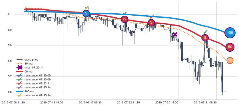 ➣ 70小时均线于(07-08 15:00: 6.12)形成【死叉】基于【死叉历史模型】预测死叉后最低波谷价格: 5.86, 死叉后最低价格5.60,已经下跌超出预测最低波谷价格, 预期反弹