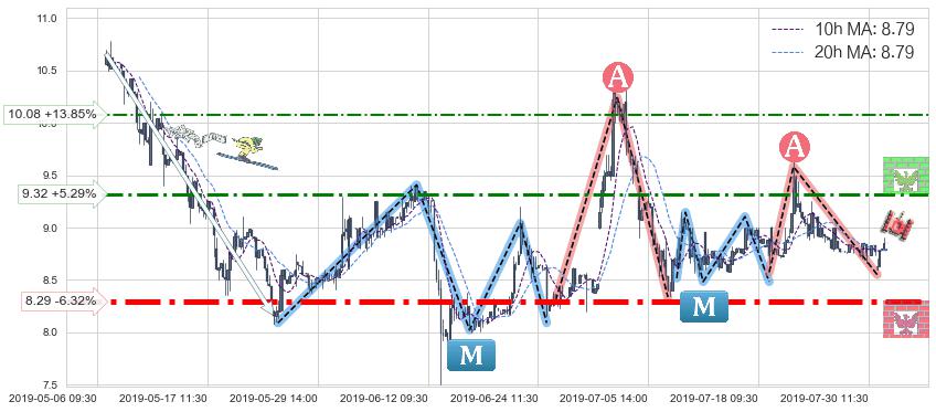 ♘ 支撑价格位8.29,可信任强度91.12%,距离最后交易2019-07-31 15:00形成的收盘价格8.85相差 -6.32%