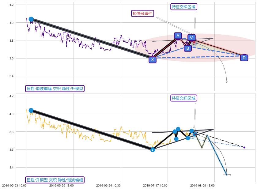 ➢ 谐波蝙蝠属【短级别信号事件】升楔型属【长级别信号事件】长短周期组合信号事件, 短长事件长度比26.42%