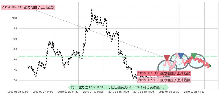 ♘ 阻力价格位8.16,可信任强度84.55%,距离最后交易2019-07-31 15:00形成的收盘价格7.70相差 +5.97%