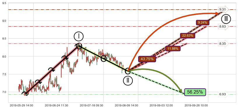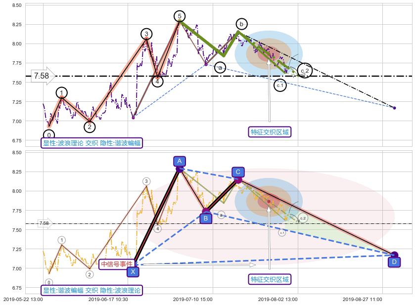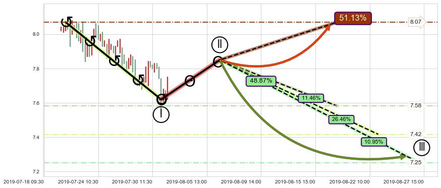 ➢ 循环浪继续向下【最高】位置(08-19:13, 7.58),匹配聚类样本比例23.44%, 可能性概率11.46%