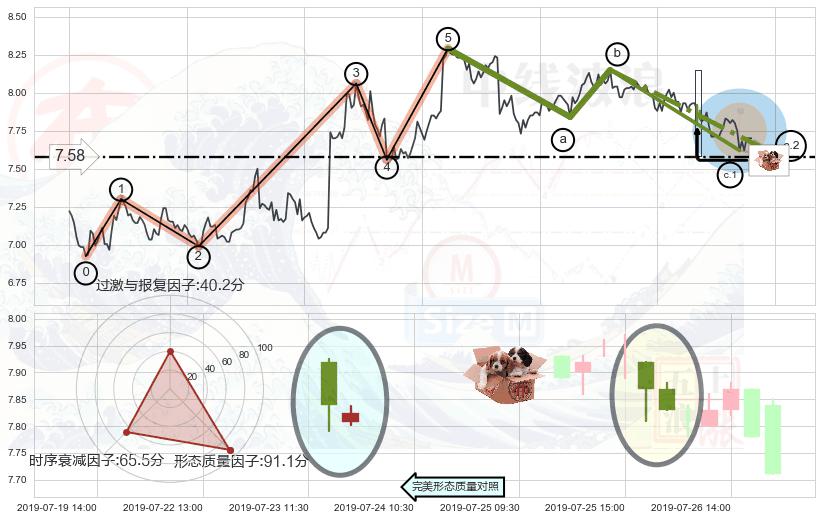 ➢ 🕰 价格走势在2019-07-26 09:30:00至2019-07-26 10:30:00期间形成底部尽头线(上山虎),残存影响值:5.13