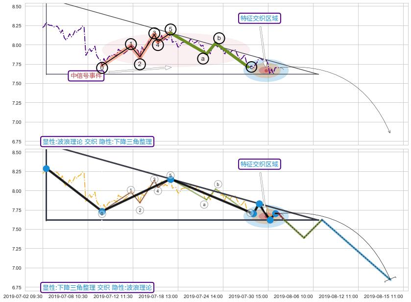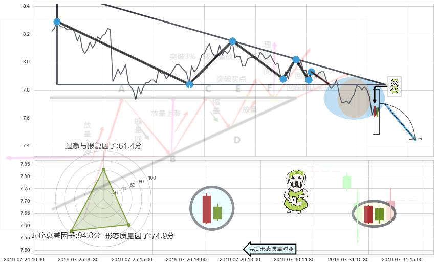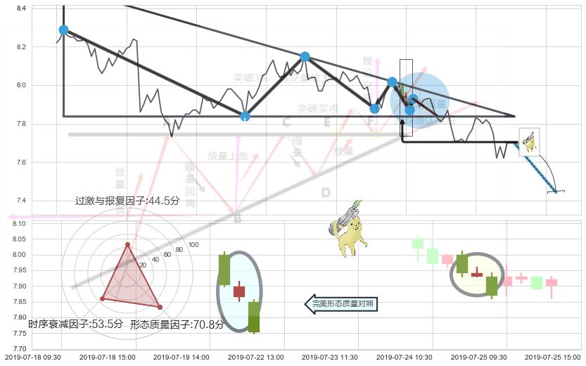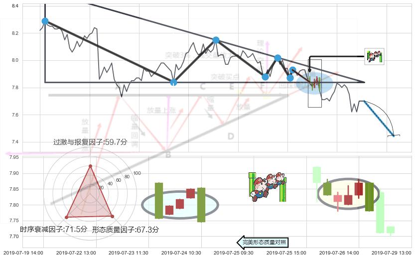 ♘ 在最后的下跌阶段2019-07-02 11:30至2019-07-31 14:00,存在 持续未破位的阻力位 ,阻力价格7.82,可信任强度78.86%,其距离最后价格7.70相差 +1.52%