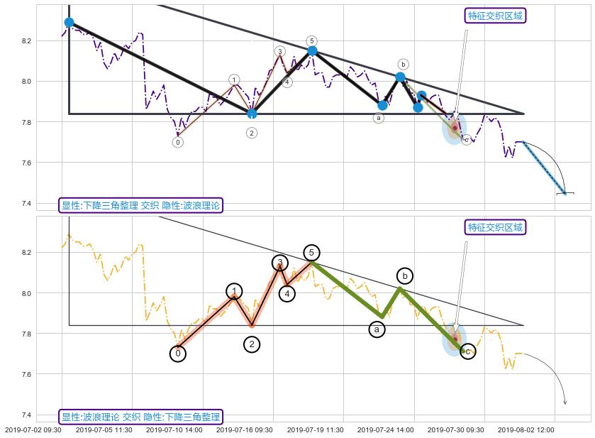 ➣ 波浪理论:猜想击穿破位c点后继续下跌 → 下跌 → 风险信号 → 小趋势跟踪