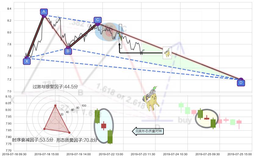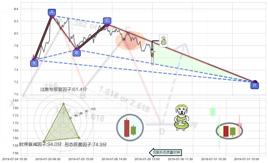 从2019-07-02 11:30至2019-07-31 14:00,共包含129个小时,阶段股价下跌-7.06%,阶段股价变动位移路程比: 1 : 8,下跌趋势角度: 42.9
