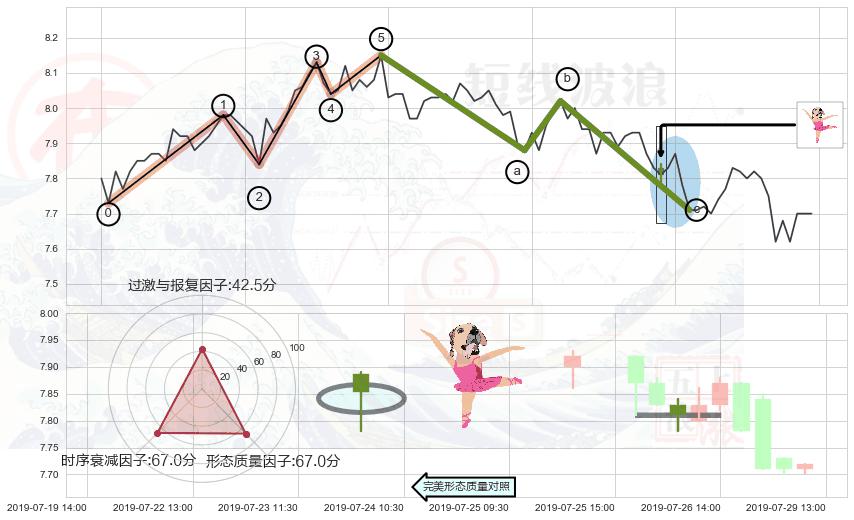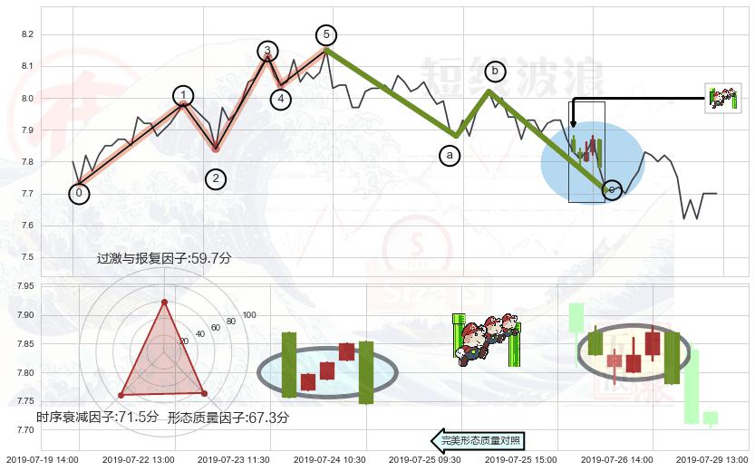 ➢ 🕰 价格走势在2019-07-26 10:30:00至2019-07-26 15:00:00期间形成下降三部曲(降势三鹤),残存影响值:-5.64