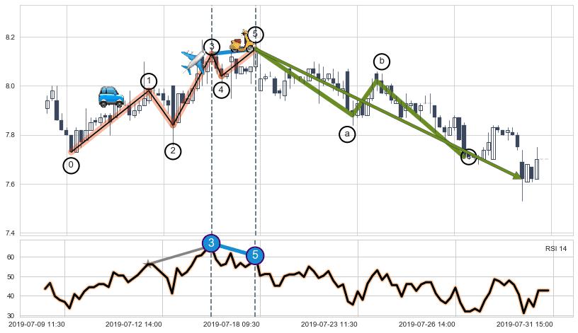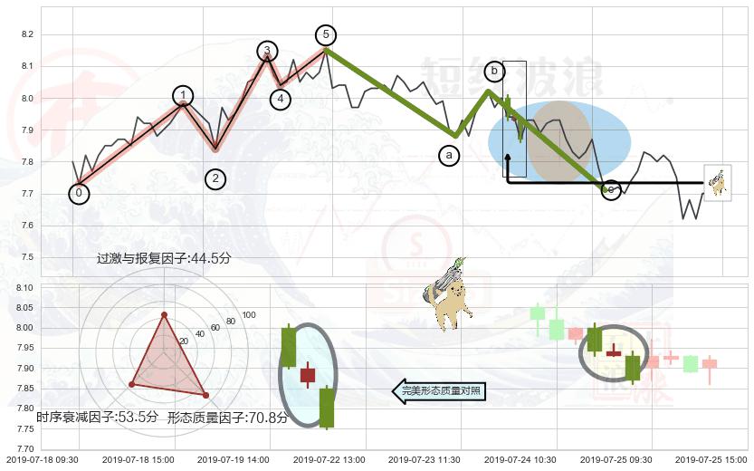 从2019-07-19 14:00至2019-07-24 15:00,共包含20个小时,阶段股价下跌-2.48%,阶段股价变动位移路程比: 1 : 3