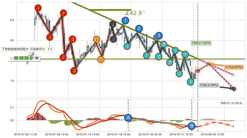 ➢ 预测:2019-08-02 12:00,【小幅反弹】稳定目前下跌趋势的前提下,预测价格:7.77